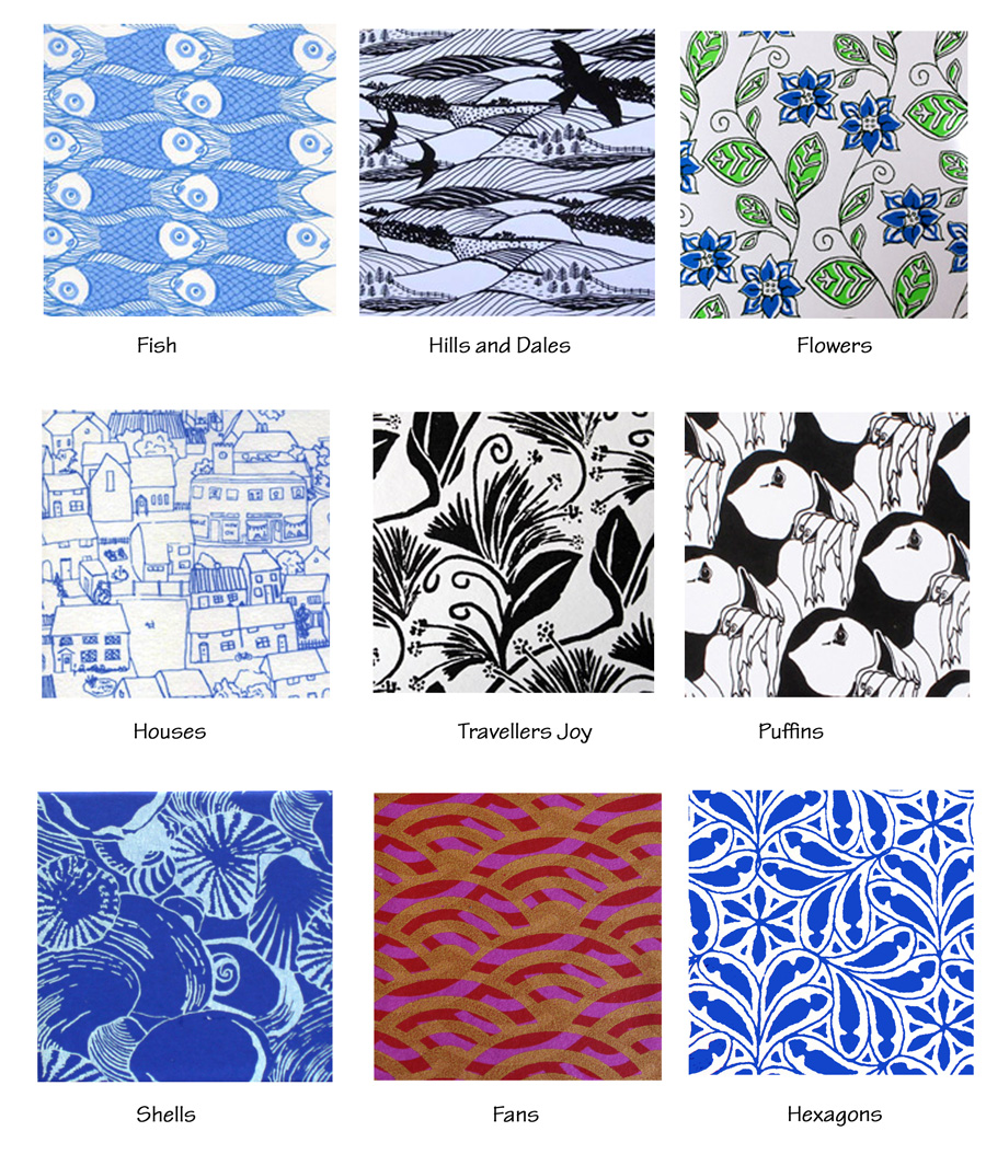 All designs are silkscreen printed, by hand onto white and coloured cartridge paper 130/140gsm. Each sheet is A3 (29.7x42cm). Most designs are available in many different colourways - only one version of each is shown here.